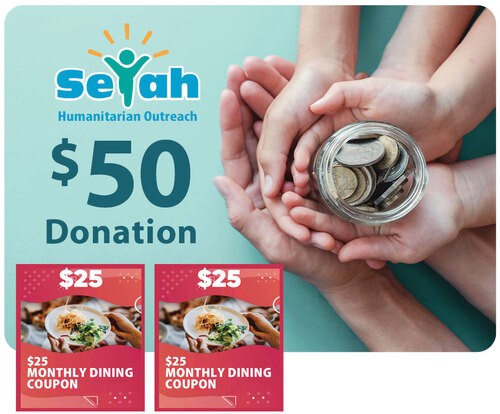$50 Donors are eligible to receive up to 500 in funding through the Humanitarian Funding Program to help meet the needs of others, including their own. $100 Donors are eligible to receive up to $1,000. (the details will be in the Donation Thank You letter) PLUS, OTHER BENEFITS AS THEY BECOME AVAILABLE